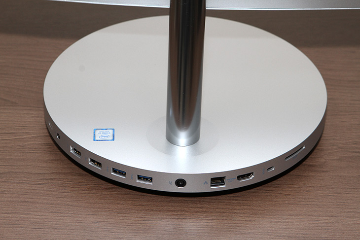 박스에서 제품을 꺼내 봤는데 얼핏보면 그냥 모니터처럼 생겼습니다. 과거에는 일체형PC라고 하면 모니터가 좀 많이 두껍고 측면에 통풍구가 있고 그런 형태 였는데요. 이제는 정말 모니터 처럼 생겼습니다. 하지만 비밀이 있었으니 하단 받침대 부분에 본체가 숨켜져 있습니다.