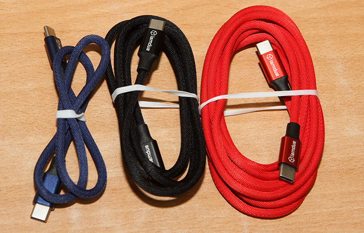 50 , 120 , 200CM의 제품을 모두 다 꺼내 봤습니다. 케이블은 패브릭 재질로 선정리가 되어있어서 튼튼해보이고 실제로 꽤 질깁니다.