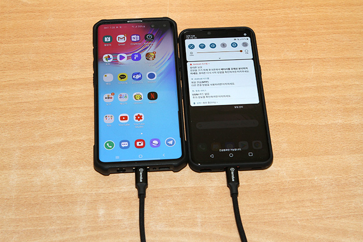 USB-C to USB-C 케이블을 이용하면 스마트폰과 스마트폰 간에 충전도 가능합니다. 한쪽 스마트폰에서 다른 스마트폰을 충전시킬 수 있는것이죠.