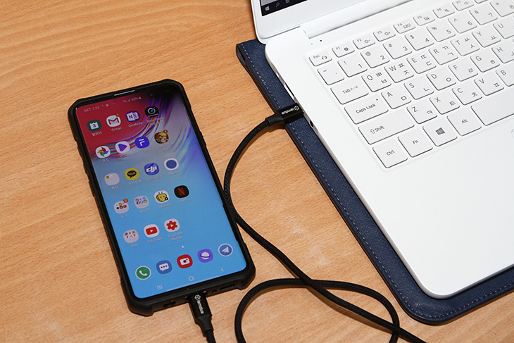 물론 고속충전은 안되므로 급할때 이렇게 쓸 수 있다는 정도로 알고 있으면 될 것 같네요. 참고로 디스플레이 모드 (DP모드)는 안됩니다. 4K 모니터를 연결하는 용도 등으로는 이 케이블을 이용할 수는 없습니다. USB 2.0 타입으로 이것이 제한 됩니다.