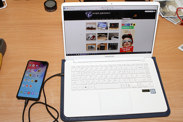 노트북에 연결한 상태로 노트북의 배터리를 이용해서 스마트폰을 충전하는 것도 가능 합니다. 요즘 나오는 노트북은 USB-C 포트가 대부분은 있으니까요.