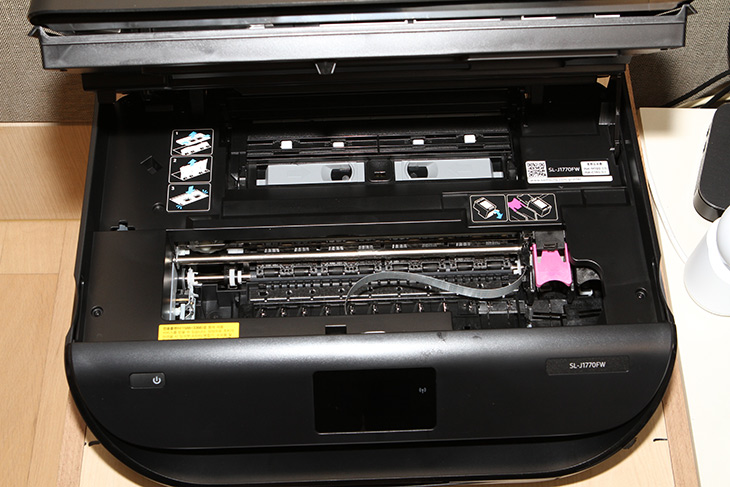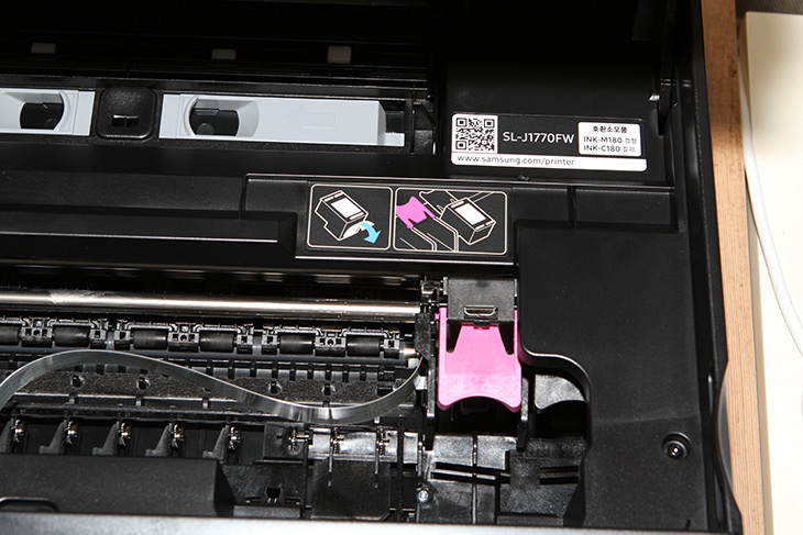 스캔 부분 하단을 열어보면 잉크 카트리지를 넣는 공간이 나옵니다.