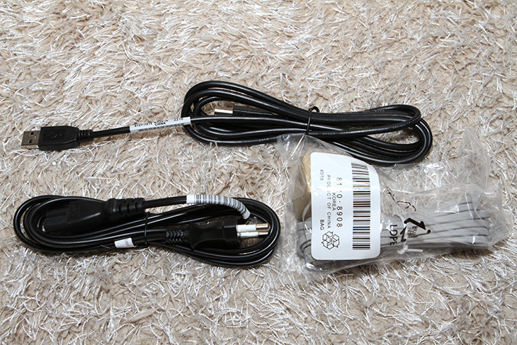USB 케이블과 전원선, 팩스를 위한 전화선이 들어가 있습니다.