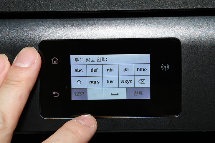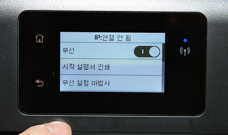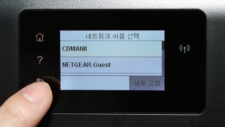 화면에 보면 메뉴가 나타나는데요. 터치로 그냥 조작이 가능해서 무척 편합니다. 처음에는 무선WiFi에 연결을 해줘야 합니다. 무선으로 연결해서 쓸 거라면 이 과정을 거쳐야 하는데요. WiFi 설정 버튼을 누른 뒤 (하단에 WiFi 모양 아이콘)