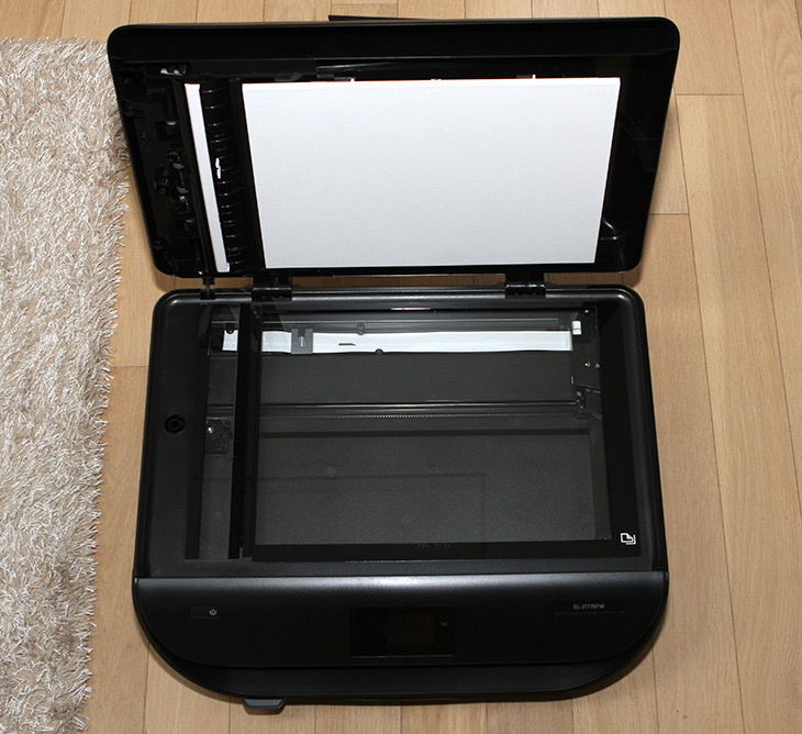 상단 부분 도어를 올리면 스캔하는 부분이 나옵니다. A4용지는 넉넉하게 스캔이 가능합니다.