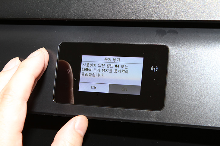 용지를 넣으라고 나타납니다. 저는 이미 넣어둔 상태였는데요. 그래서 OK를 눌렀습니다.