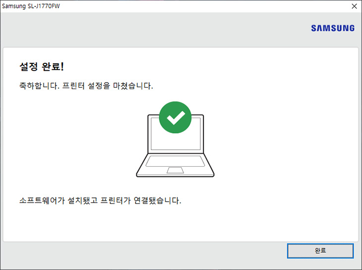 설치가 완료가 되었습니다. 완료 버튼을 누릅니다.