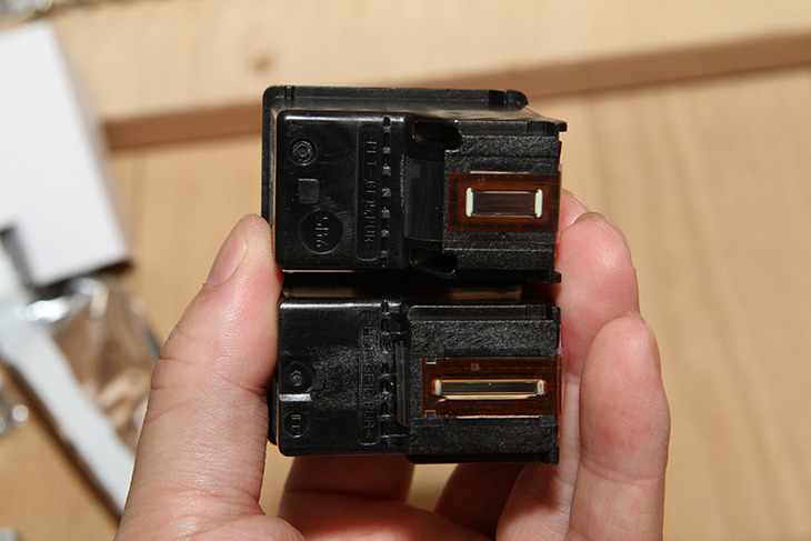 잉크 카트리지에 헤더 부분 입니다. 헤더의 길이가 좀 다른데 과거보다는 헤더가 무척 커 보입니다. 그래서인지 출력속도가 무척 좋았는데요. 그리고 오래 사용하다보면 헤더가 막히거나 고장이 날 수 있는데 그때는 카트리지 자체를 그냥 교체하면 됩니다.