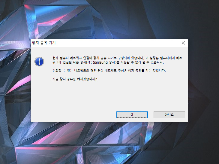 공유기능을 켤 수 있습니다. 공유기능을 켜면 네트워크에 연결된 다른 컴퓨터에서도 사용이 가능 합니다.