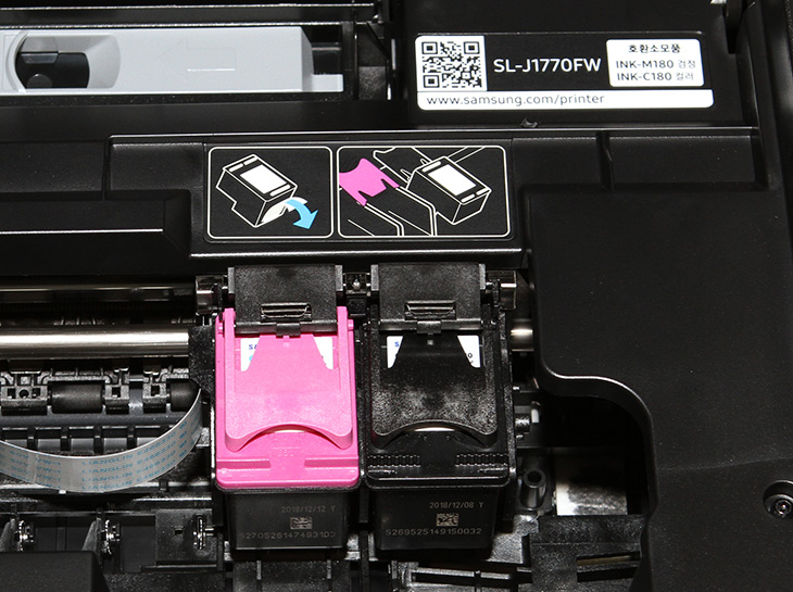 스캔 부분 하단을 열어보면 잉크 카트리지를 넣는 공간이 나옵니다.