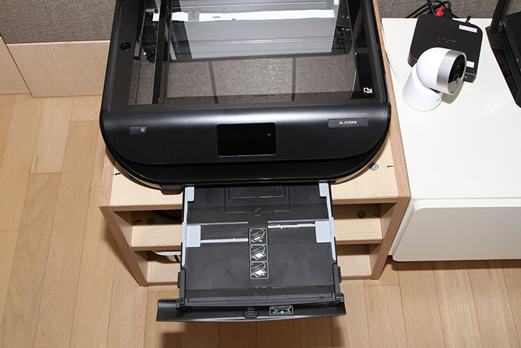 A4용지가 아주 많이 들어가는 것은 아니었지만 개인적으로 쓰기에는 충분했습니다. 용지는 100매가 들어갑니다. 가정집에서 가끔 출력을 하는 용도로는 너무 넉넉합니다.