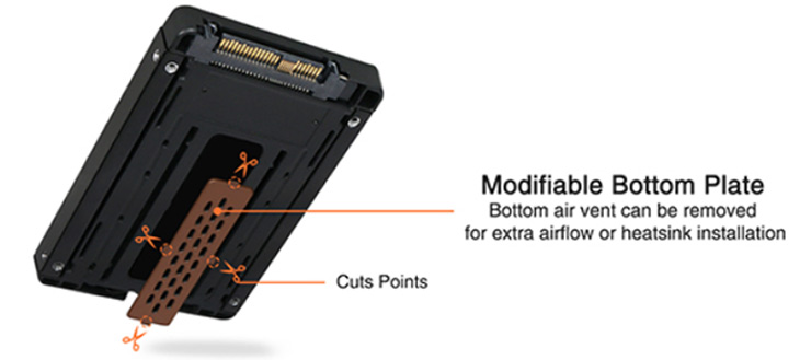 사이즈는 2.5인치 U.2 SSD와 동일한 사이즈 입니다. 굳이 사이즈를 이렇게 맞춘 것은 U.2 SSD와 동일한 형태로 활용하기 위해서이죠. 위에는 방열판이 있고 모양도 무난하게 깔끔해서 얼핏보면 완성품처럼 생겼습니다.