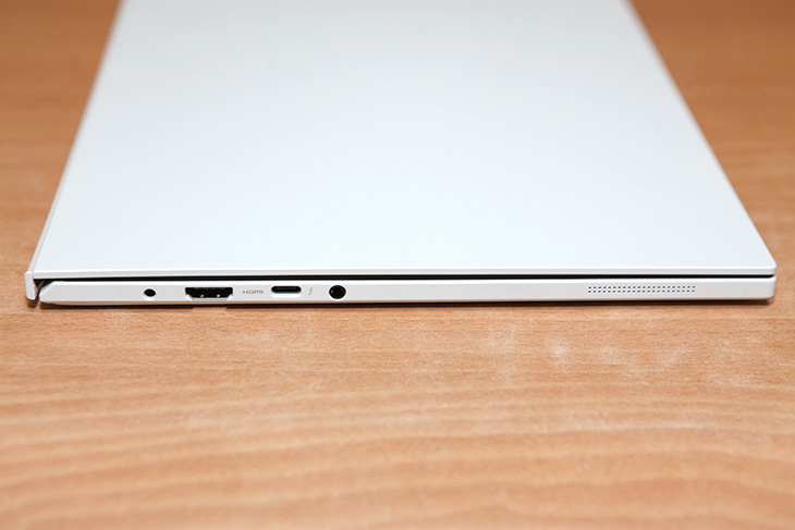 왼쪽에는 전원단자, HDMI, 썬더볼트4단자, 헤드셋단자가 있습니다. 썬더볼트3 USB-C에서 이번에 썬더볼트4 단자로 바뀌었습니다. 아직 썬더볼트4를 지원하는 장치가 그렇게 많지는 않으나 같은 썬더볼트3 장치를 사용하더라도 기존보다 성능이 좀 더 올라갑니다.