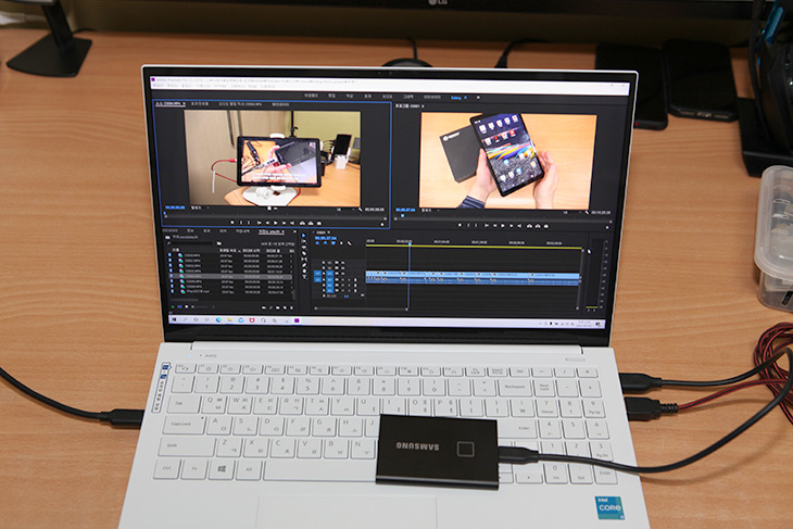 제가 사용하는 삼성 T7 Touch 2TB에 넣어둔 영상들을 편집 작업도 해보고 여러가지 활용을 해 봤는데요. 물론 데스크탑에 비해서는 성능이 떨어지긴 하지만, 노트북이라서 엄청 답답하다는 느낌은 좀 적었습니다.