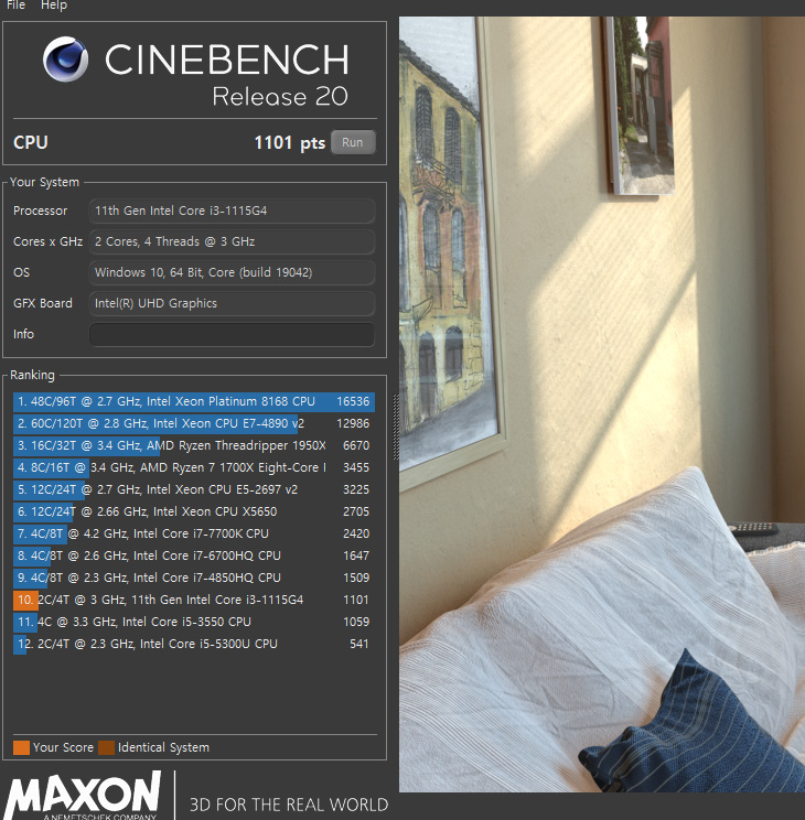 참고로 씨네벤치 R20의 점수는 1102 pts 입니다.