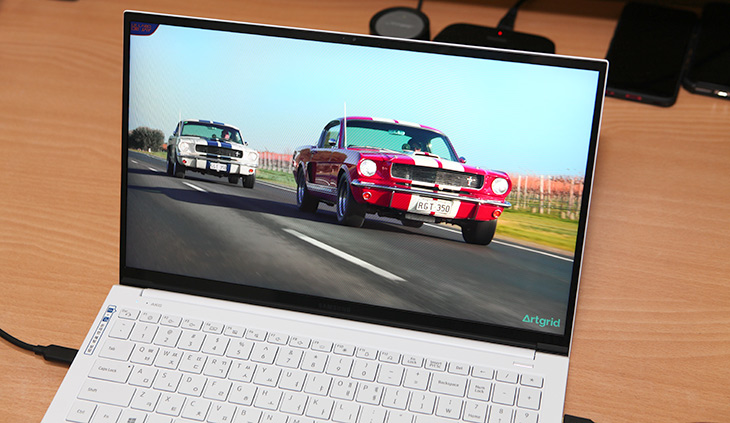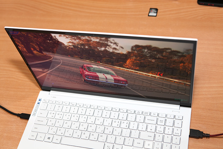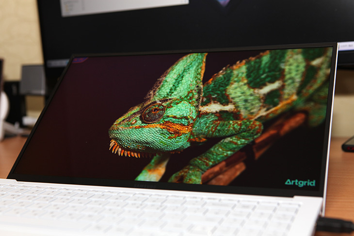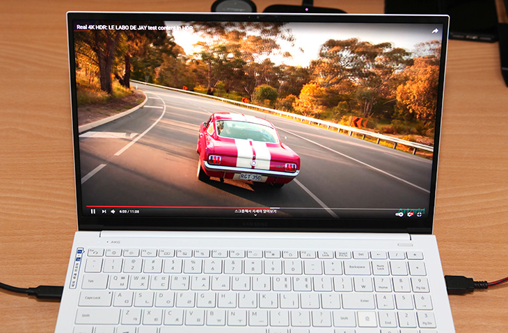 색은 QLED 색감이 적용되어있는데 색을 표현 하는 부분에서 밝기와 표현력을 많이 높인 상태라는게 느껴졌습니다. 삼성 올웨이즈 경우에는 약간 색이 탁하게 느껴질 정도로 이 노트북은 색 표현할 때 좀 더 진득하고 진한 느낌을 주고 그러면서도 화면이 밝습니다.