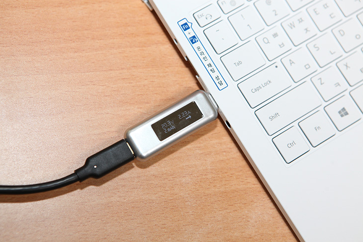 이 노트북은 썬더볼트4에 파워딜리버리도 들어가 있습니다. USB-C 포트를 통해서 20V 충전이 가능합니다. 요즘은 보조배터리도 20V를 지원하는 제품이 많아서 노트북을 야외에서도 충전하기가 참 쉬워졌습니다. 제 경우에도 이노트북을 사용하면서 별도로 충전기를 사용하지 않고 그냥 USB-C를 이용해서만 충전을 했습니다.