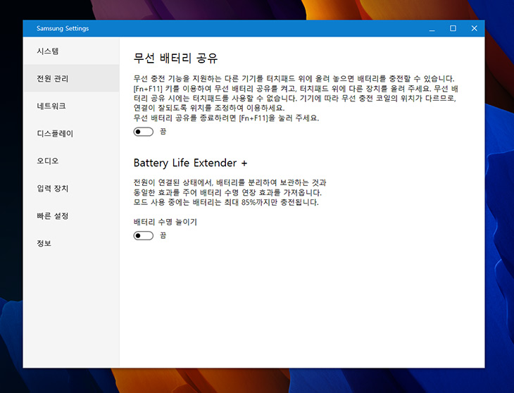 무선 배터리 공유기능을 이용할 수 있는데요. 삼성 갤럭시S10부터 되던 이런 기능을 노트북에서도 구현 합니다.