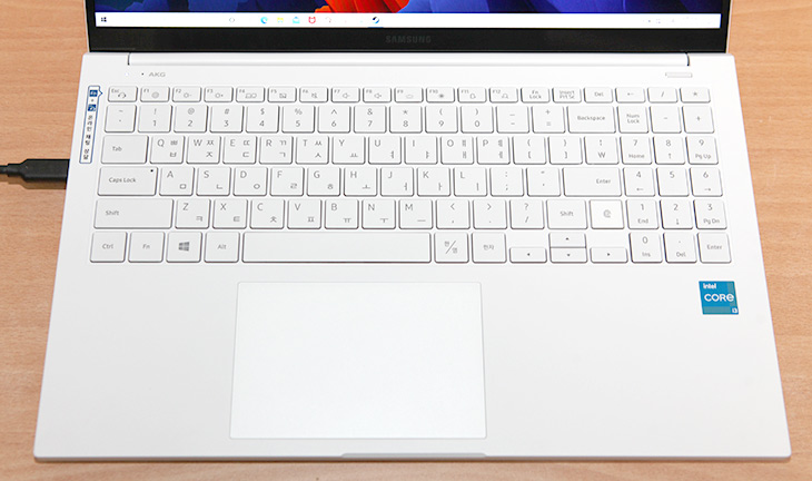 노트북 화면의 베젤은 무척 얇은 편 입니다. 그렇다고 베젤이 완전 사라진정도까진 아니지만 많이 얇아졌죠. 다만 이부분은 다른 노트북들도 많이 얇아져서 크게 장점은 아닐지도 모르겠습니다. 다만 삼성의 대표되는 노트북인만큼 가장 많이 보는 부분인 화면은 넓고 시원해보입니다. 바디 사이즈 대비 화면의 비율이 크면 화면이 더 크게 느껴지는데요.