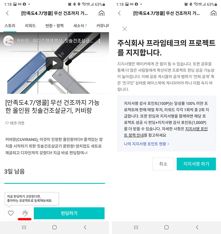 마음에 드는 제품이 있다면 바로 펀딩에 참여해도 좋을 것 같습니다