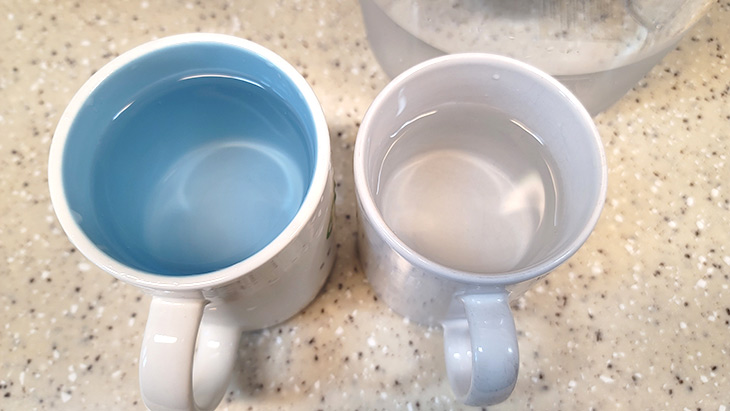 한쪽에는 수돗물, 한쪽에는 브리타 정수기를 이용한 물을 받아봤습니다. 마셔 봤는데 정말 신기하게 수돗물에서 나는 약품냄새나 조금 역겨운 맛이 없어집니다. 느낌상 약수나 샘물을 바로 마시는 그런 느낌이 납니다. 집에 손님이 왔을 때 정수기로 걸러낸 물을 드렸는데 생수 따로 사서 먹는 그런 맛이라고 하시더군요. 모르고 마시면 정말 전혀 수돗물인줄 모를 정도 입니다. 물맛도 꽤 좋았는데요. 물에 있는 나쁜 성분은 걸러내고 인체에 좋은 광물질 등은 그대로 유지가 됩니다. 필터가 불순물, 물때, 염소, 중금속 이런것만 걸러낸다고 하네요.