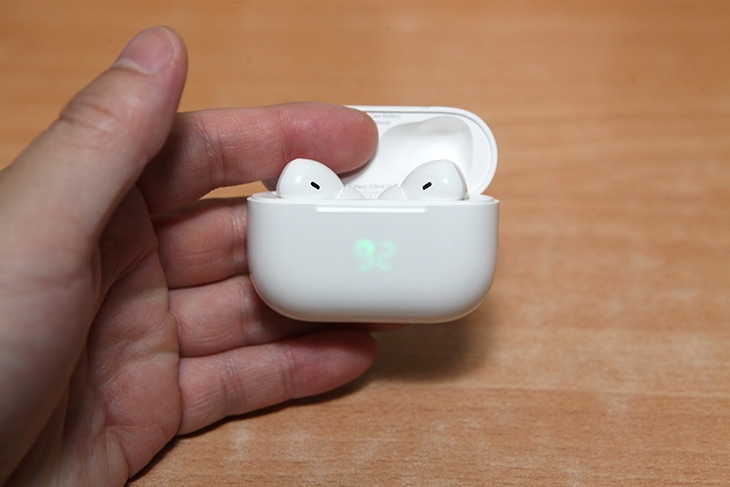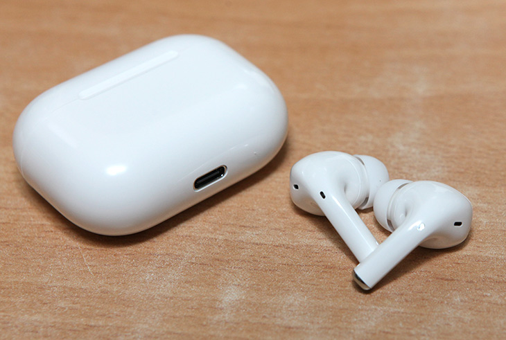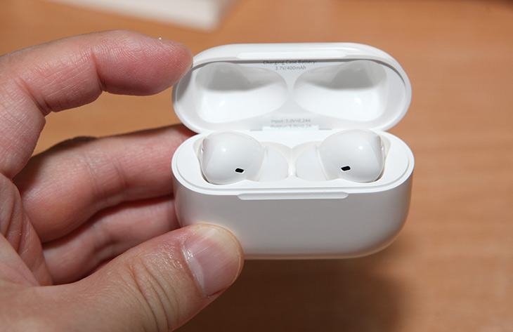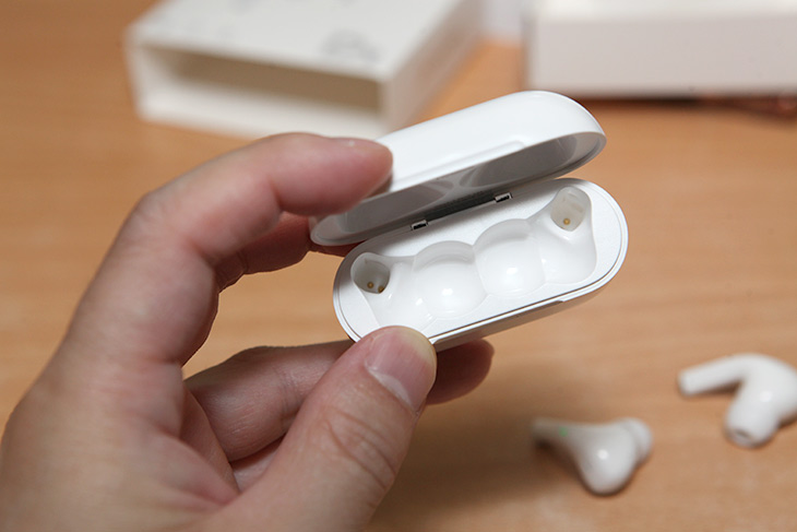 충전함 경우에는 흰색에 약간 넓적한 모양인데요. 에어팟 프로와 많이 닮아 있습니다. 실제로 얼핏보면 에어팟 프로라고 생각할 것 같습니다.