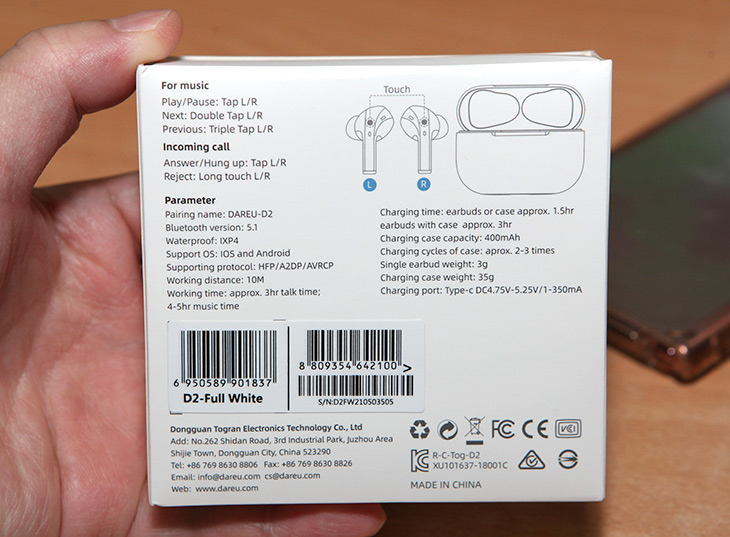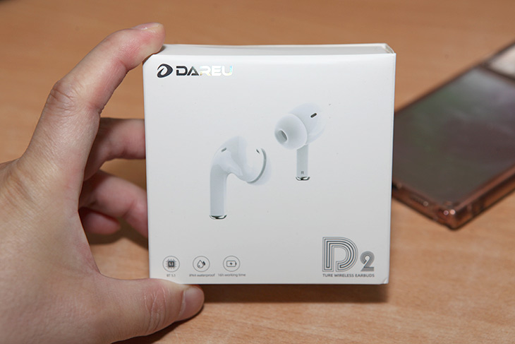 먼저 제품 박스 입니다. Darue D2라는 제품인데 제품 디자인을 보면 하얀색에 커널형타입의 블루투스 이어폰입니다.