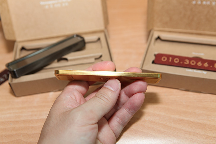 박스를 열어봤는데요. 골드 금속받침대와 가죽은 버건디 색상으로 된게 보이네요.