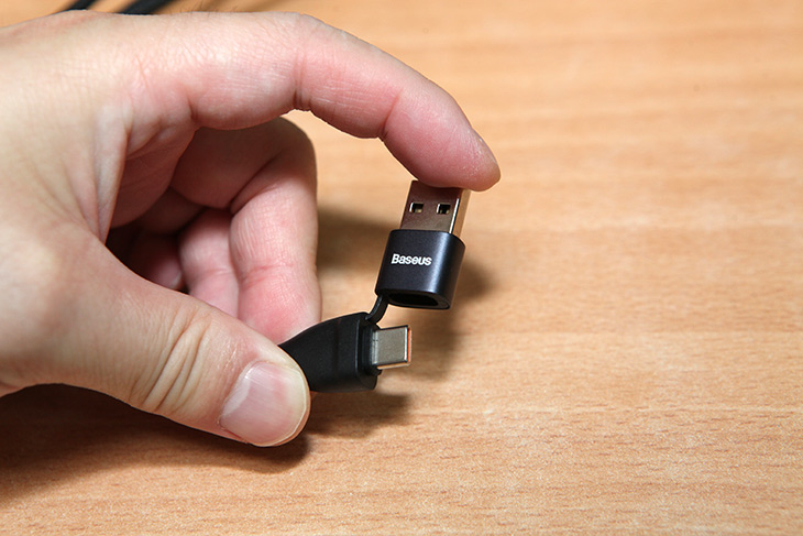 USB-A 단자쪽을 분리하면 USB-C 단자로 변신을 합니다. 이렇게 하면 USB-C to USB-C 로 연결시 100W 충전까지 지원을 합니다.