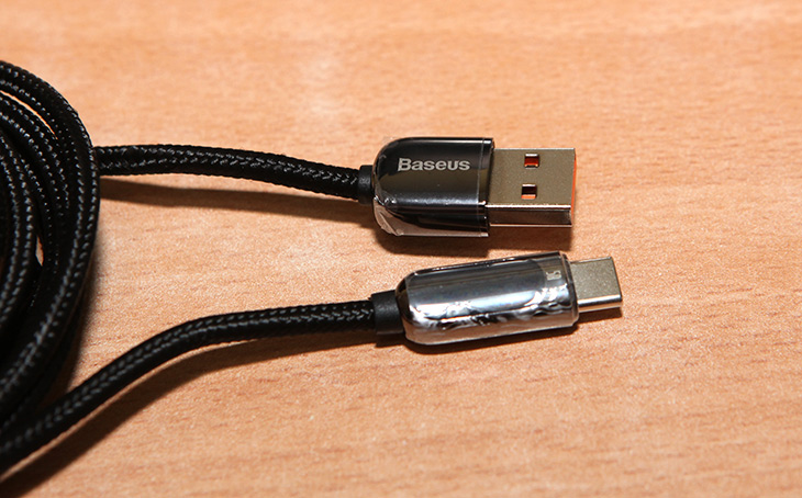 베이스어스의 케이블 2종류인데요. 하나는 멀티케이블이고 하나는 5A 충전량을 표시하는 케이블 입니다.