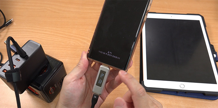 스마트폰을 충전해봤는데 PPS충전을 지원하네요. 25W 45W의 고속충전을 지원해서 스마트폰이 지원한다면 초고속충전을 할 수 있습니다. 일반적인 고속충전보다 훨씬 빠른 초고속충전을 지원하므로 시간이 엄청 단축되죠.