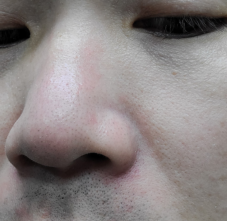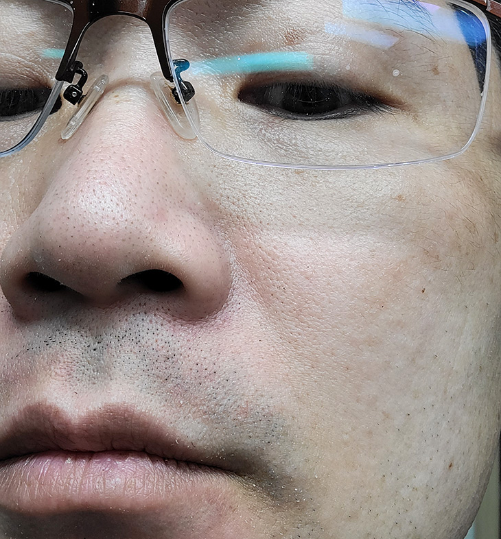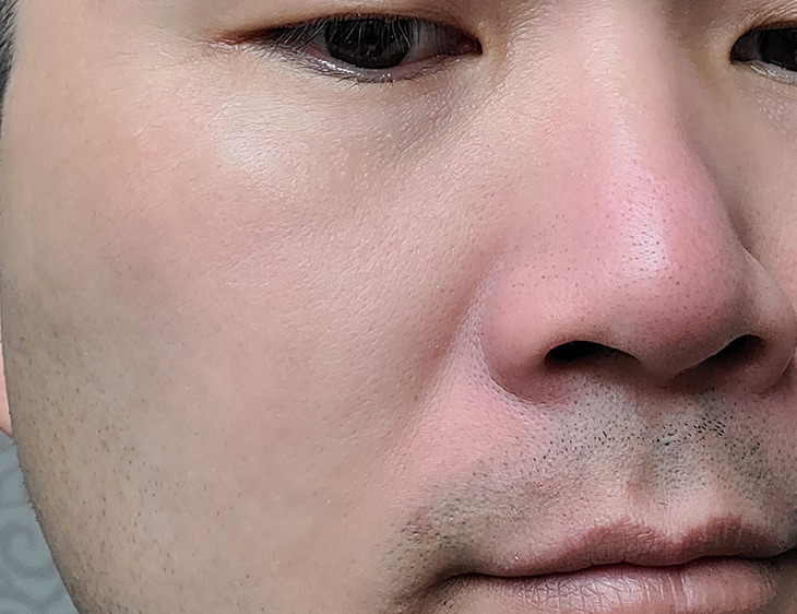 세안을 하고 난 뒤 사진을 찍어 봤는데요. 멀리서 보면 세안을 깨끗하게 한 것 같지만 자세히 보니 뭔가 각질도 보이고 블랙해드도 보이고 뭔가 깨끗하지 않은 느낌이네요. 특히 코하고 볼 사이 부분이나 T존이라고 부르는 부분에 뭔가 많이 보입니다.