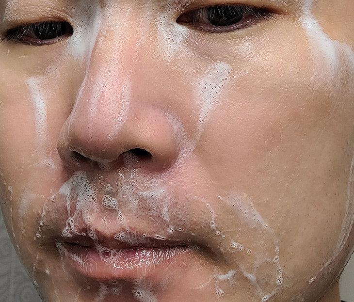 일단 제가 원래 하던대로 손으로 세안을 해 봤습니다. 미지근한 물로 세안을 하다가 비누로 깨끗하게 세안을 하며 손가락으로 여러곳을 문지르며 세안을 꼼꼼히 해 봤습니다.