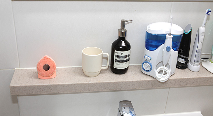 실리콘 브러시가 앞에 보이는데 이렇게 놓아도 디자인 자체가 깔끔해서 괜찮네요.