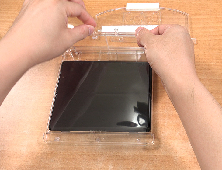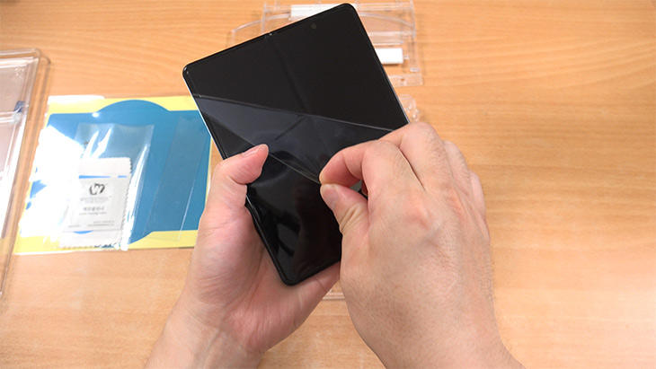 UTG 강화유리 보호필름 위에 얇은 필름을 걷어냅니다. 이렇게 하면 설치가 끝납니다.