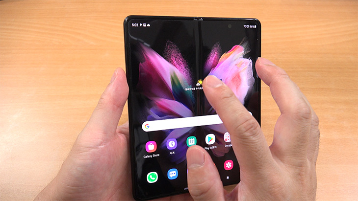 Z폴드3에 UTG를 입힌 모습인데요. UTG 위에 다시 UTG 강화유리를 입힌 상태 입니다. 화면을 접었다가 펼쳐도 전혀 불편함이 없었습니다. 사이즈도 기본필름이랑 동일 했습니다. 터치감도 더 좋아진 느낌이 드네요. 그리고 확실히 느껴지는게 화면이 엄청 매끄럽습니다. 기본필름이랑 차이가 너무 심하게 나서 기본필름은 바로 잊게 만듭니다.