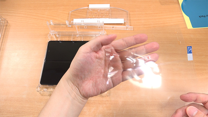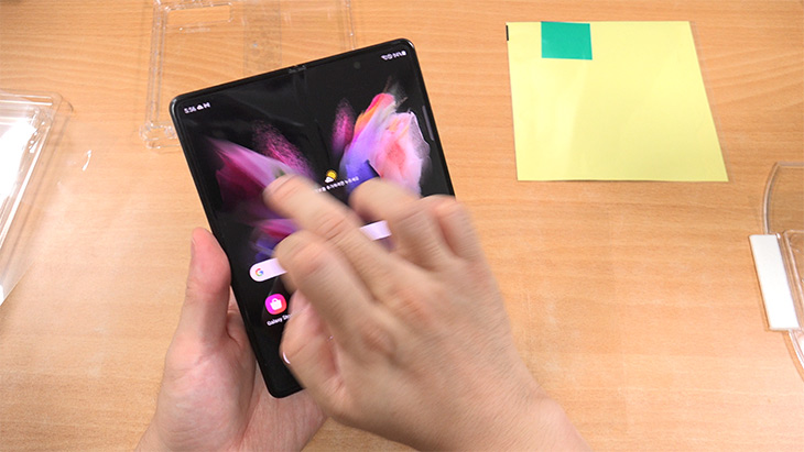 접히는 화면에는 UTG가 사용이 됩니다. 계속 접었다 폈다가 해도 견디는 강화유리가 사용되어 있는데 이것을 보호하는 UTG를 또 입혀볼겁니다.