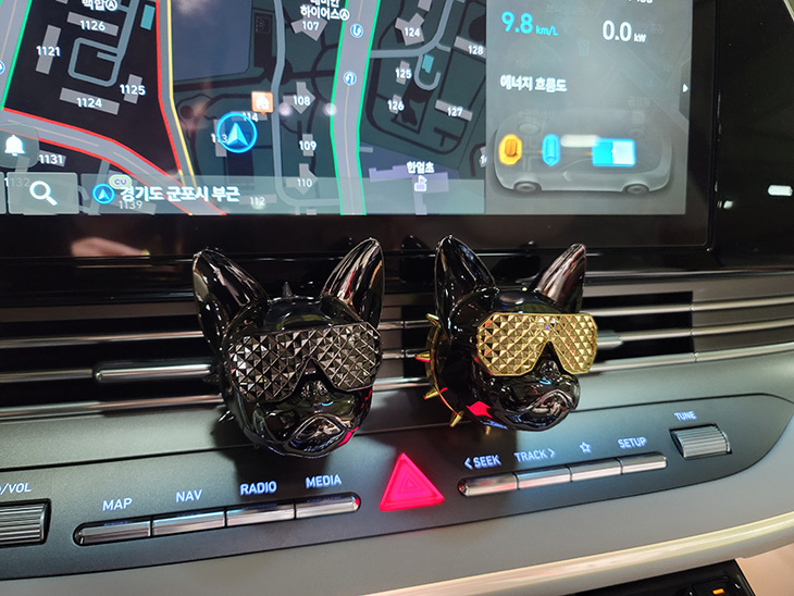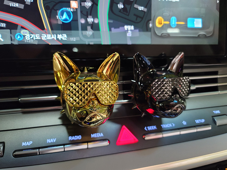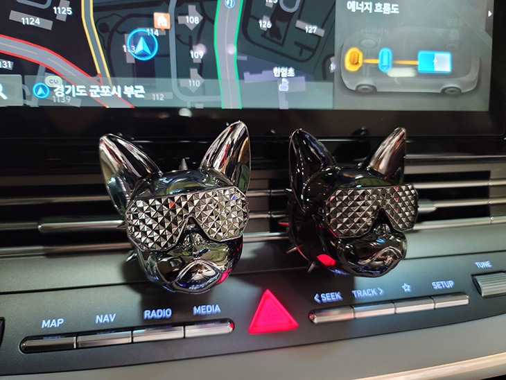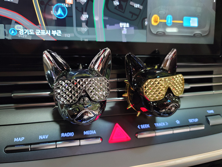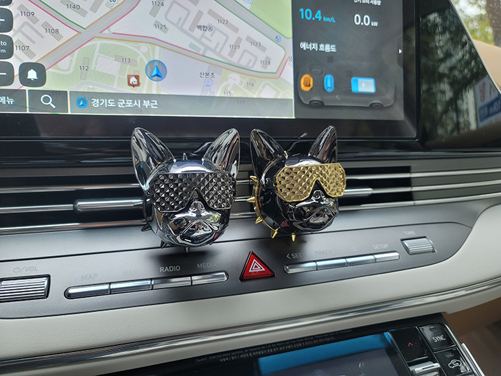 운전을 하면서 즐거움을 줄 수 있는 용품을 소개하려고 합니다. 차량용 방향제 게이즈 지독인데요. 이번에 나온 5가지 컬러 모두 다 더뉴그랜저 하이브리드에 설치해서 사용을 해 봤는데요. 자동차 구매 하고 난 뒤 가장 먼저 구매하는 것중 하나도 방향제가 아닐까 싶은데요. 차량에서 나는 새차 냄새 때문에 또는 차량의 분위기를 바꿔보고 싶어서 구매하게 되는데요. 이런 방향제는 차량의 분위기에 맞춰서 조금은 개성있고 독특한것을 설치하면 좋은데요. 게이즈 G/DOG 지독은 불독모양의 특이한 디자인에 어디든 놓아도 잘 어울리는 컬러로 재미를 줍니다. 설치된 모습들은 많이 봤었는데 차량용방향제 직접 설치해보니 차량분위기도 확 바뀌고 향기도 꽤 좋았습니다.