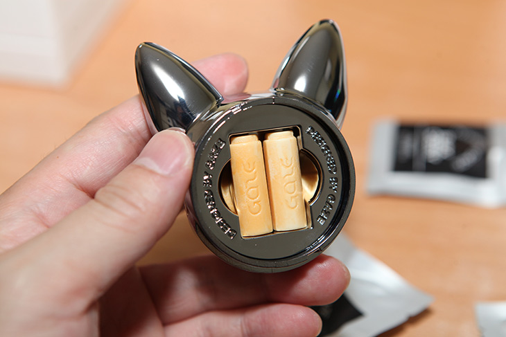뒷부분을 돌려서 빼면 내부에 방향제를 넣을 수 있는 공간이 나옵니다.