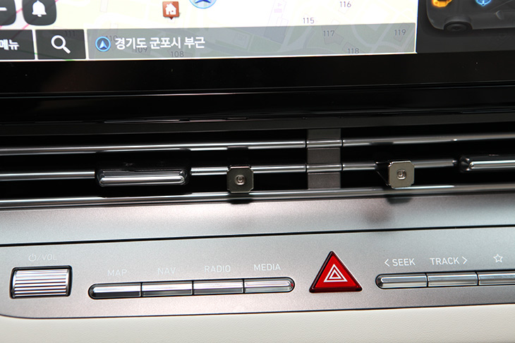 게이즈 지독을 자석클립에 올리면 착 달라 붙습니다. 조금 나란히 붙여 봤는데요. 네비게이션 바로 아래에 올라가고 다른 버튼 방해주지 않으면서도 딱 올라갑니다.