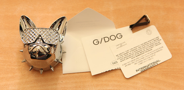 지독하게 완벽함을 고집한 G/DOG 방향제. 이보다 더 완벽할 수 없는 차량용 방향제의 디자인 바이브를 지금 만나보세요. 폴리곤 스타일로 구현한 선글라스와 스터드 징의 화려한 넥클리스가 지독