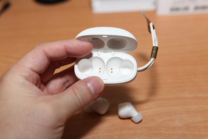 충전함 내부 모습 입니다. 안쪽도 하얀색인데 충전함 자체가 이쁩니다. 그리고 생각보다는 이어폰이 쉽게 잘 빠지는것도 마음에 듭니다.
