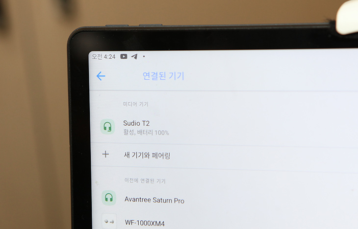 태블릿에 블루투스 이어폰을 연결시켜서 사용을 해 봤는데요. 연결하고 하는데는 자연스럽게 잘 되네요.