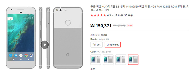 구글픽셀1 구매링크 입니다. 롬 용량은 128GB로 반드시 하시기 바랍니다. 32GB는 용량이 작아서 실제 사용시 불편합니다. 128GB로 해야 한번에 많은 사진을 백업할 수 있고 편하게 관리 가능합니다.
