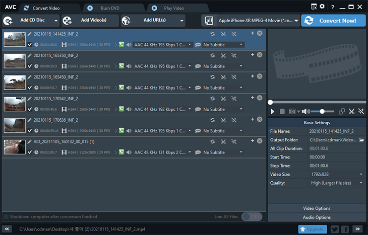 여러개의 파일을 하나로 병합을 시켰습니다. 제 경우에는 블랙박스 영상이 어래개 파일로 나눠져 있어서 , 하나로 합치니까 보기도 편하고 좋네요. 개인적으로는 모바비가 기능도 많은데 인터페이스가 가장 깔끔하고 편했습니다. 너무 많은 옵션을 둬서 고민할 필요도 없었구요. 원래 좋은 프로그램은 사용은 편리하고 뒤에서 프로그램이 동작은 복잡하게 동작하면서 좋은 퍼포먼스를 내어주는게 좋은데요. 딱 그런 프로그램이 아닐까 싶네요. 안정적으로 변환을 잘 해주는 부분도 만음에 들었습니다. 안정적이고 쓰기 편한 돈주고 구매를 할만한 프로그램이 필요하셨던 분이라면, Movavi Video Converter 써보시면 좋을 것 같습니다.