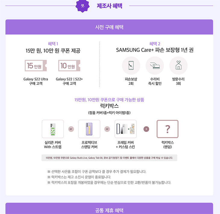 제조사에서도 혜택이 있습니다. 삼성 케어+를 통해서 파손보상, 수리비 할인 방문수리를 받을 수 있는데요. 그런데 파손에 대한 보장은 있으나 분실하거나, 스마트기기 추가 보상이나 파손 수리 대행 서비스등은 없습니다.