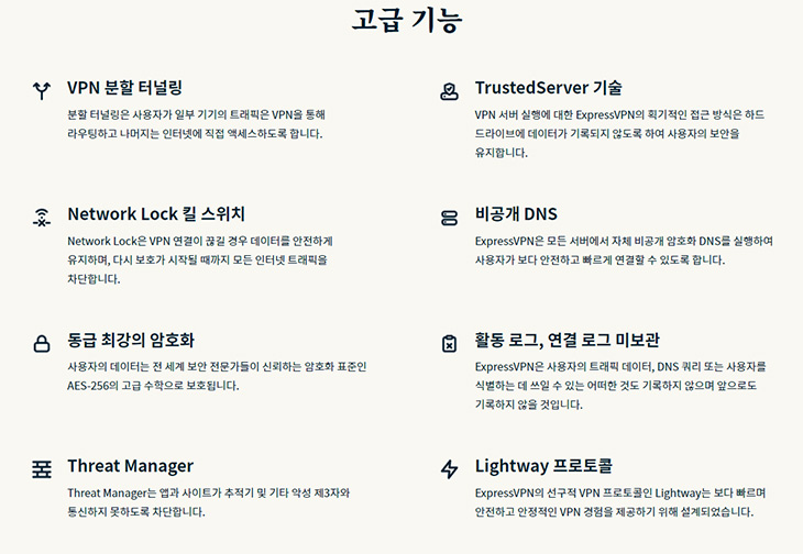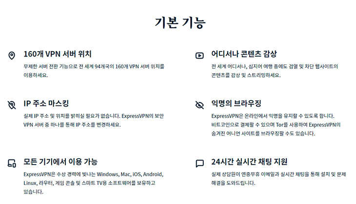 기본기능으로는 세계에 있는 각 국가의 서버를 이용해서 아이피를 우회할 수 있고, 모든 데이터를 암호화 하여 보안을 강화시킬 수 있습니다.