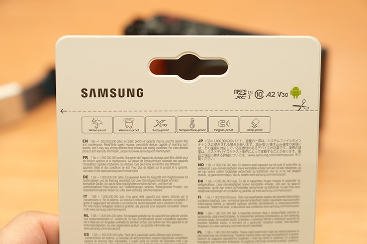 MicroSD에 여러가지 로고가 있는데 U3 V30 모두 같은 내용이긴 한데 읽기 쓰기 모두 30MB/sec 이상을 만족해야 이 로고가 붙습니다. 실제 녹화를 기준으로 이 성능을 만족해야하는데요. 근데 메모리가 가지고 있는 등급이기도 합니다. 실제 벤치마크와 결과만 놓고 보면 V60이라고 해도 될것 같긴한데 이게 등급이 정해져 있다보니 카메라에서 메뉴 선택시 일부 제한이 걸리는 부분이 생길수도 있습니다. 결론적으로는 이 제품은 V30이라는것.