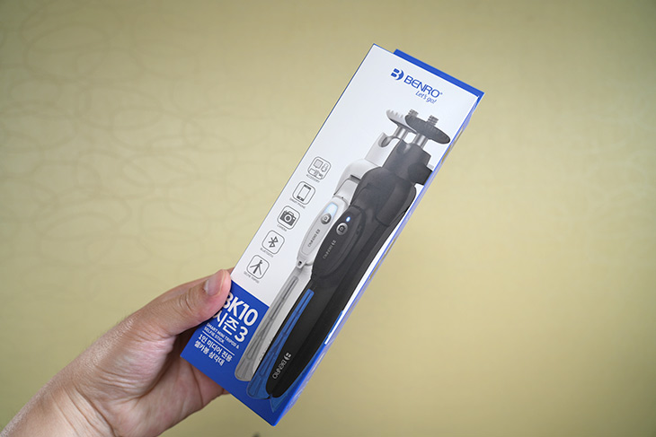 벤로 BK10 시즌3 입니다. 이 제품은 조명과 마이크가 포함된 버전이 있고, 셀카봉 삼각대만 있는 기본 모델이 있습니다. 제가 소개하는 제품은 기본 모델 입니다.