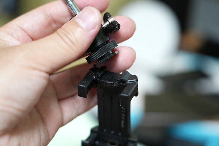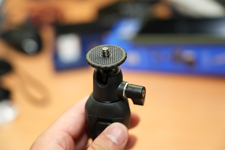 기본적으로 미니 삼각대 역할을 할 수 있어서 상단에 1/4인치 볼트가 있어서 여러가지 카메라나 악세서리를 고정할 수 있습니다.